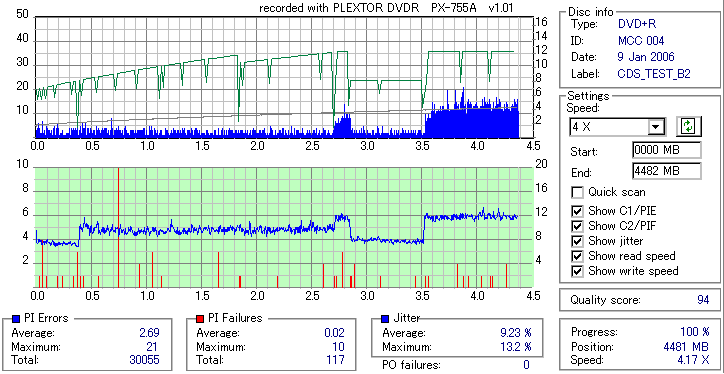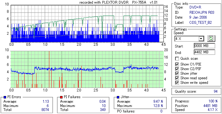 PLEXTOR DVD-RW/+RW 16x PX-755A/JP -DVD+R Burn Quality Test- |
