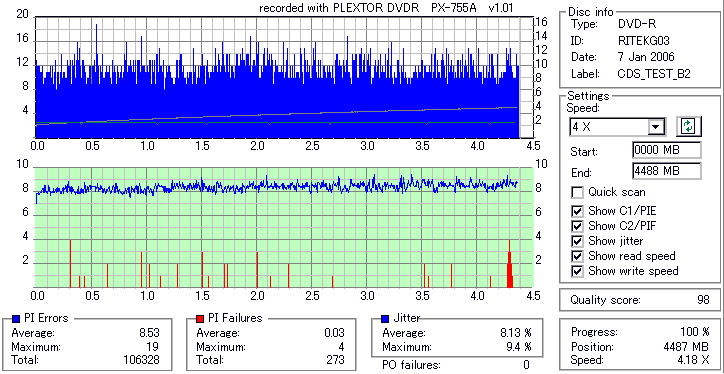 PLEXTOR DVD-RW/+RW 16x PX-755A/JP -DVD-R Burn Quality Test- |