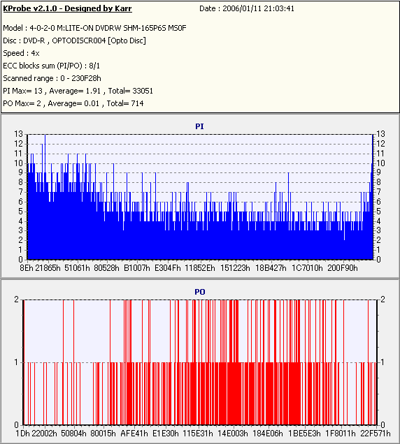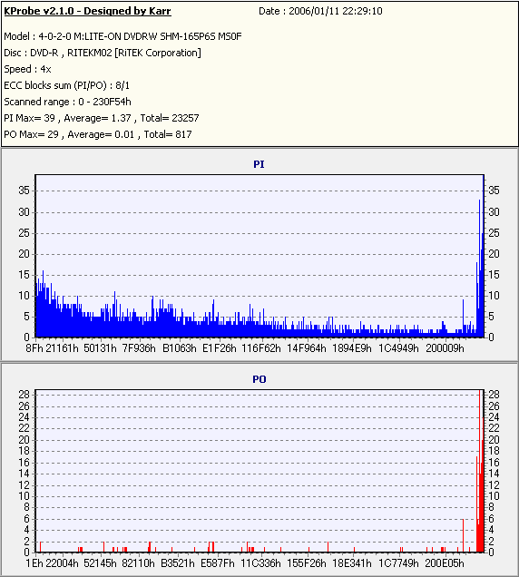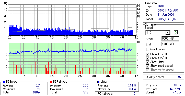 Group.Bでは台湾の主要メーカーであるCMC,DAXON,GigaStorage,Optodisc,Prodisc,RiTEKについて扱います。 4倍でもCMCと相性が出てしまいました。どうもCMCは-Rの8倍と+Rの16倍以外はやめたほうがよさげです。 その他…ProdiscやRiTEK、DAXON、OPTOは他のドライブと比較すると比較的まともに焼けてます。 特にOPTOとの相性が良さそうですね。 |