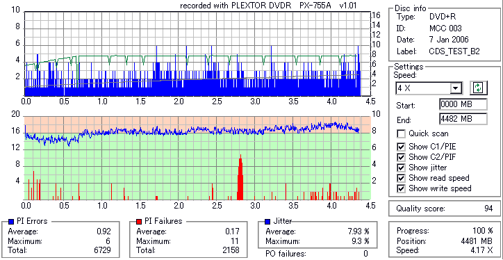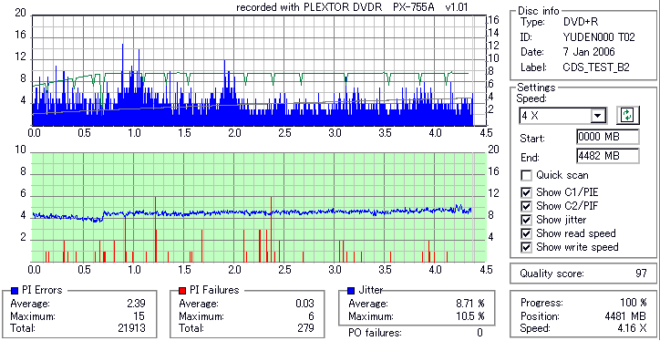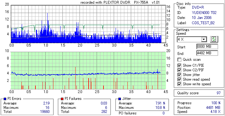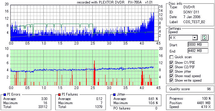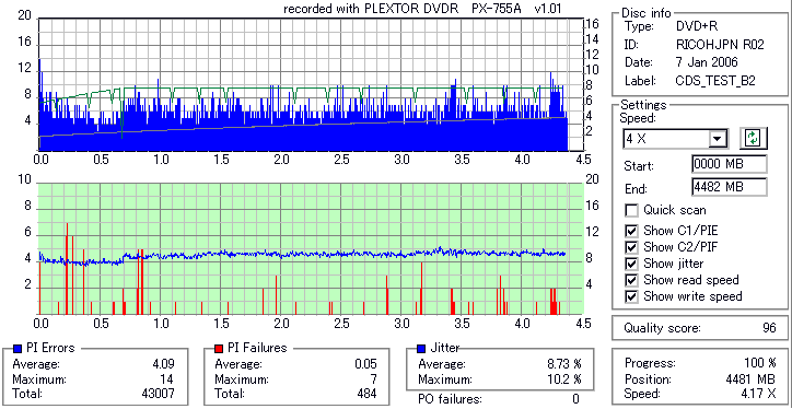 PLEXTOR DVD-RW/+RW 16x PX-755A/JP -DVD+R Burn Quality Test- |