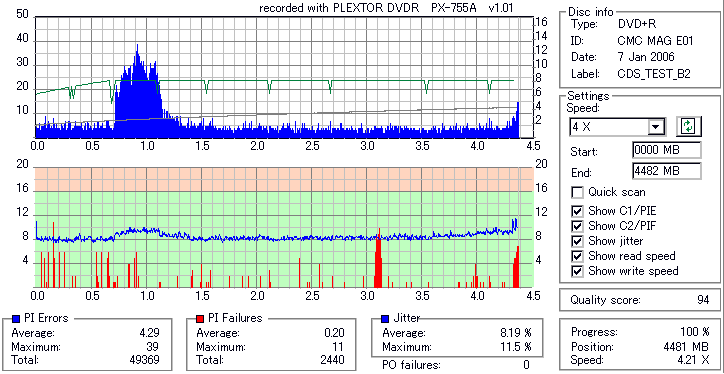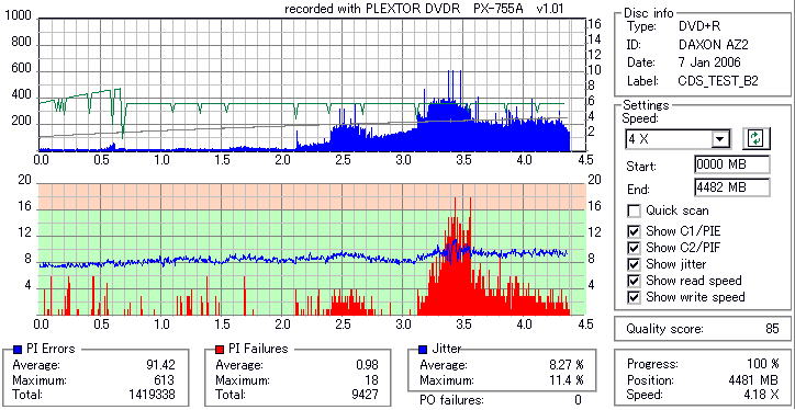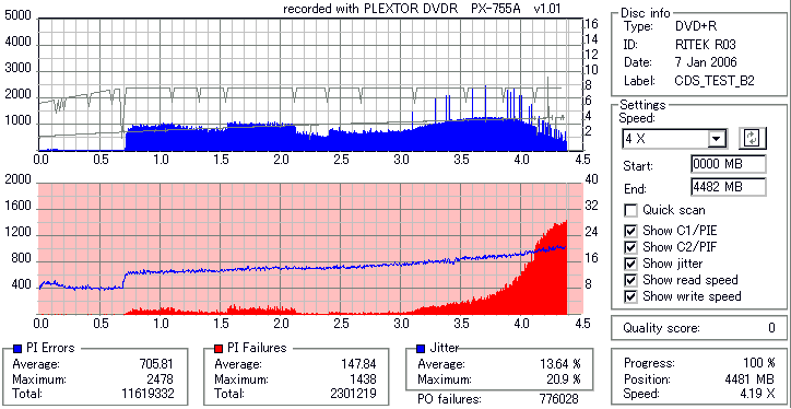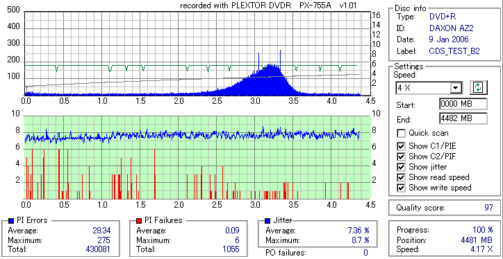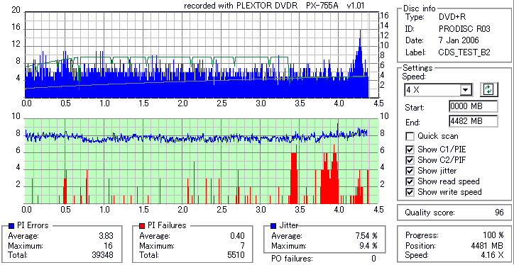 PLEXTOR DVD-RW/+RW 16x PX-755A/JP -DVD+R Burn Quality Test- |