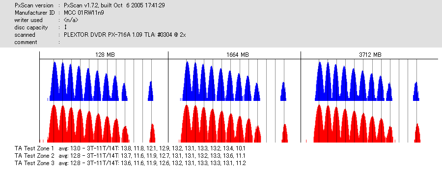 ここでは-RW/+RWなどの書き換え用メディアについて扱います。 ぶっちゃけた話、このドライブのRW系メディアへの書込み品質は標準よりも低そうです。 全体的に記録品位が悪いとかそういう話ではないんですが…… 何と言うか、一部のメディアに対して猛烈な拒否反応を示します。 そして、その「一部のメディア」と称されるグループの範囲があまりにも広いというか。 三菱やRICOH、PHILIPS等の超大手のディスクすら跳ねてしまうというのは正直問題アリでしょう。 こんなのファームウェアで十分改善できる範囲だと思いますので、早急な改善を望みます。 |