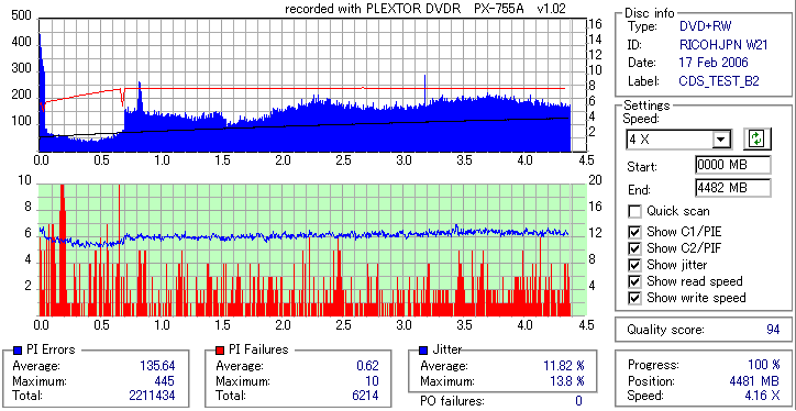 PLEXTOR DVD-RW/+RW 16x PX-755A/JP -DVDRW Burn Quality Test- |