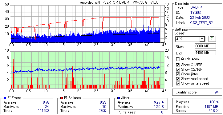 PLEXTOR DVD-RW/+RW 18x PX-760A/JP -DVD-R Burn Quality Test- |