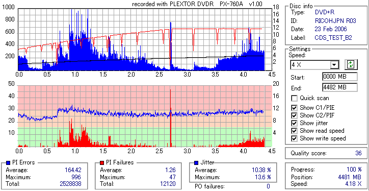 PLEXTOR DVD-RW/+RW 18x PX-760A/JP -DVD+R Burn Quality Test- |