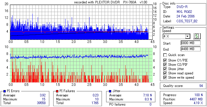 PLEXTOR DVD-RW/+RW 18x PX-760A/JP -DVD-R Burn Quality Test- |