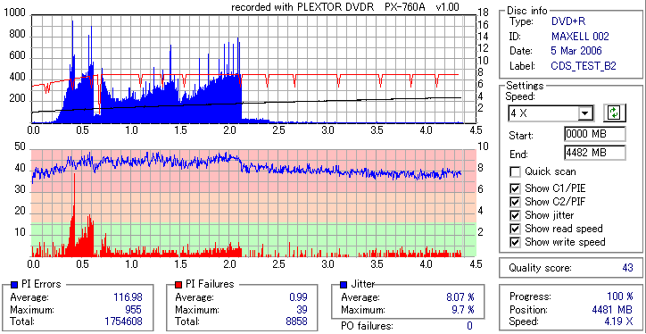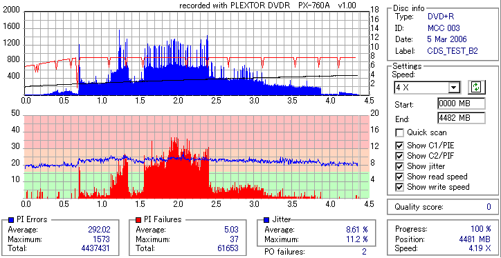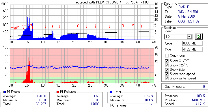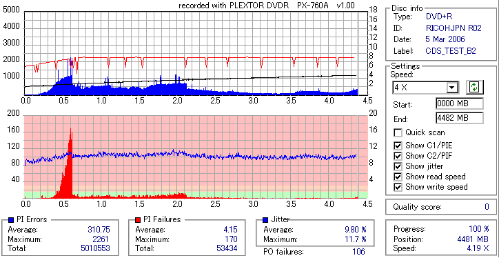 PLEXTOR DVD-RW/+RW 18x PX-760A/JP -DVD+R Burn Quality Test- |