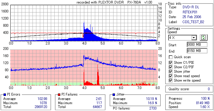 PLEXTOR DVD-RW/+RW 18x PX-760A/JP -DVDR DL Burn Quality Test- |