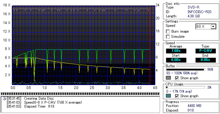CDSpeed "Create data disc" -データディスク作成による速度グラフ- |