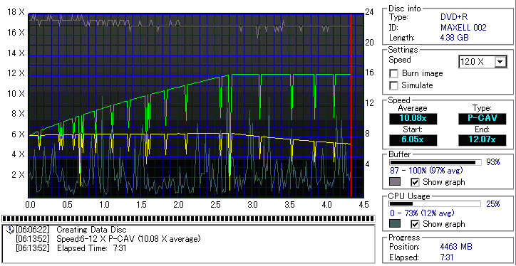 CDSpeed "Create data disc" -データディスク作成による速度グラフ- |