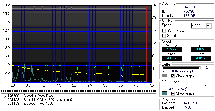 CDSpeed "Create data disc" -データディスク作成による速度グラフ- |
