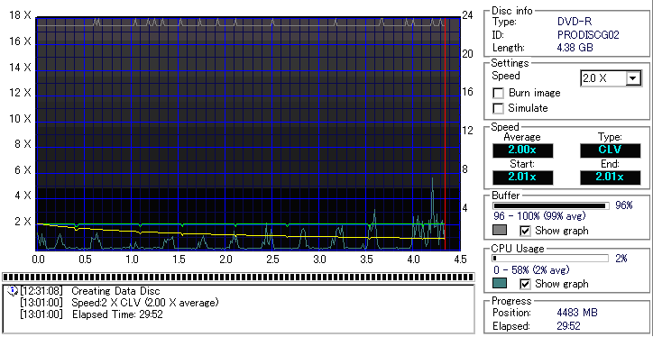 CDSpeed "Create data disc" -データディスク作成による速度グラフ- |