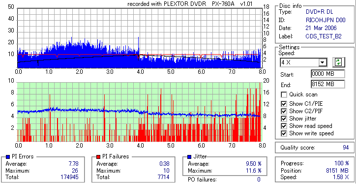 別に良好というほどではないですが、RICOHがちゃんと焼けてくれると2層メディアの選択肢が広がって嬉しい事もあります。 |