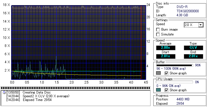 CDSpeed "Create data disc" -データディスク作成による速度グラフ- |