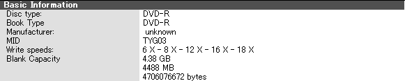 太陽誘電 DVD-R 16x(TYG03)を挿入した際の表示。