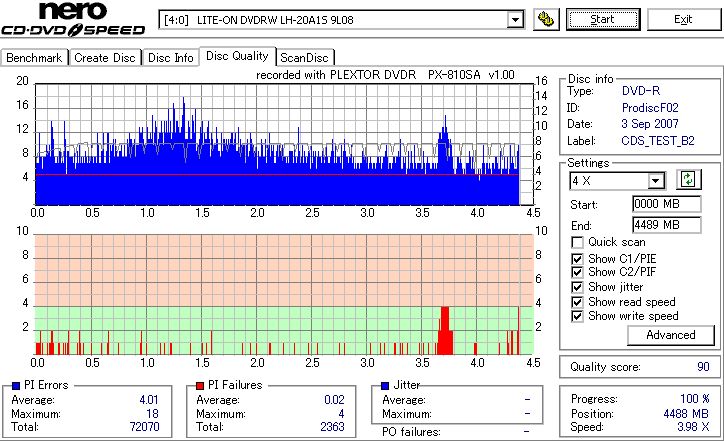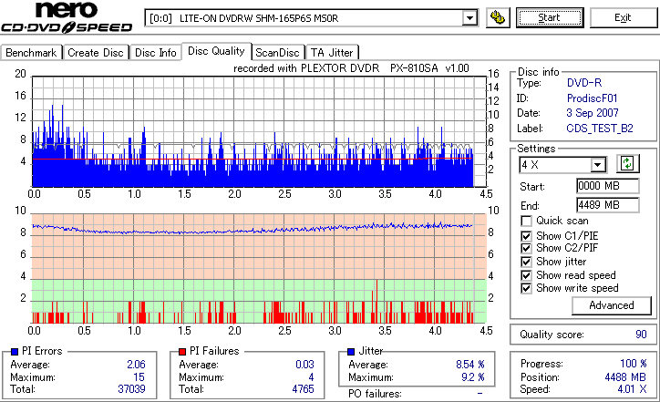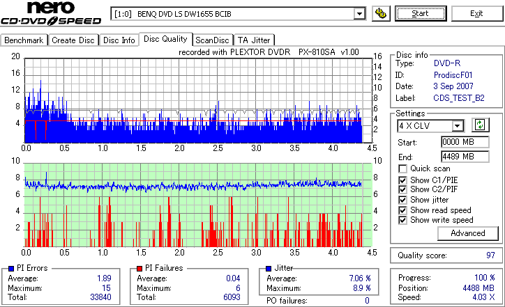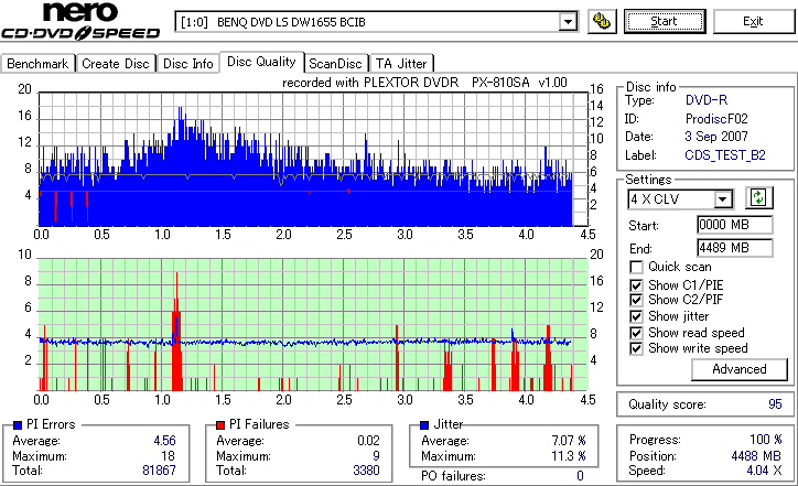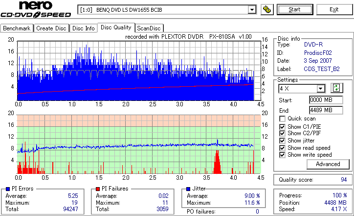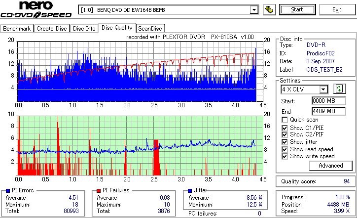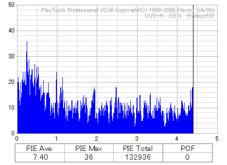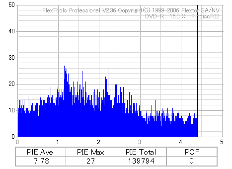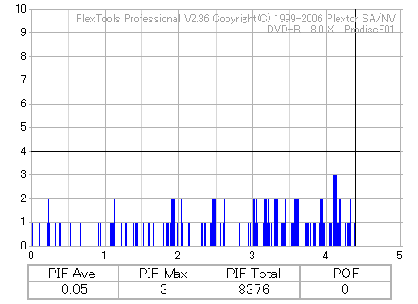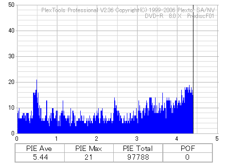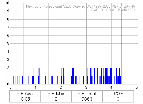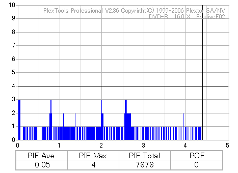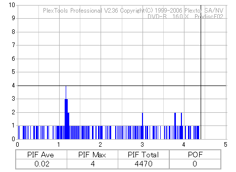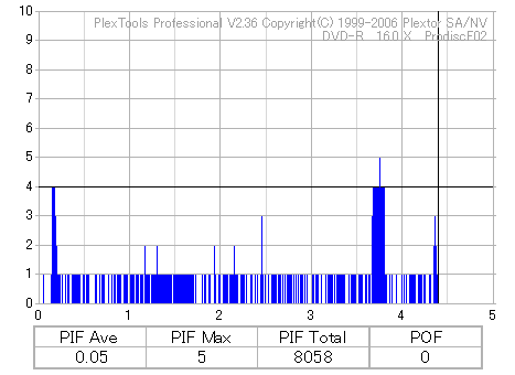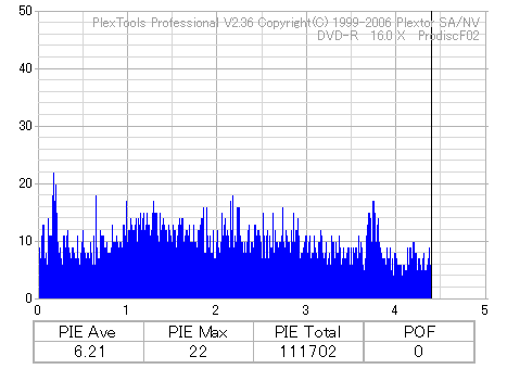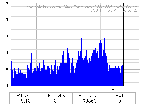 Prodisc16倍も特に問題ない結果です。若干PIFが多めに出ていますが、記録速度も6倍〜16倍どれでも問題は出ていません。