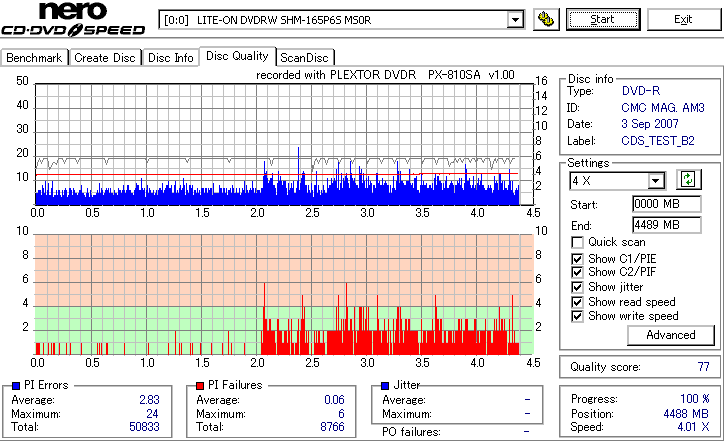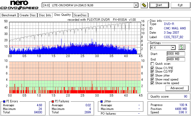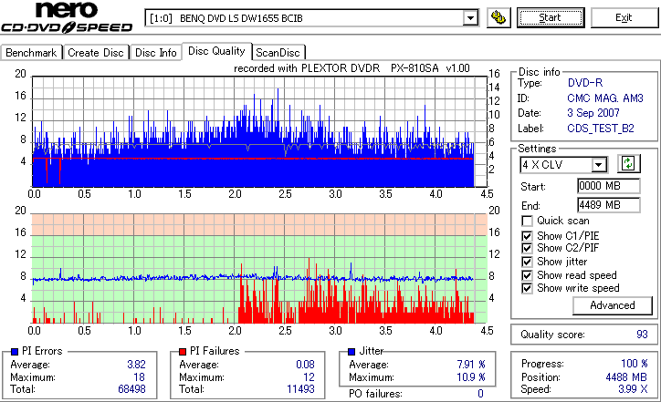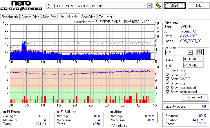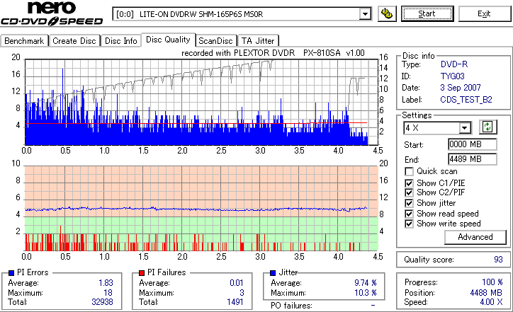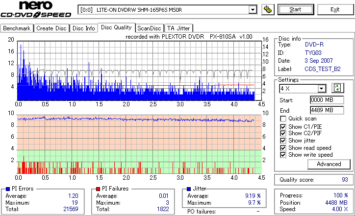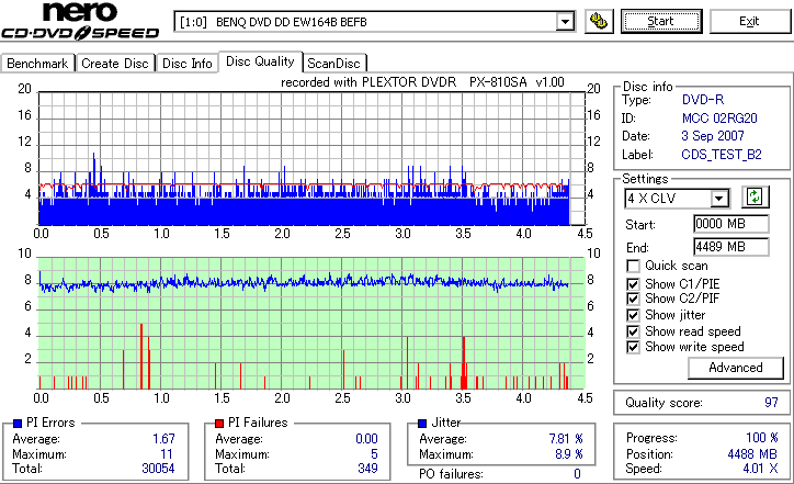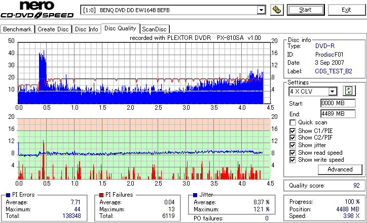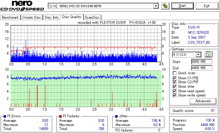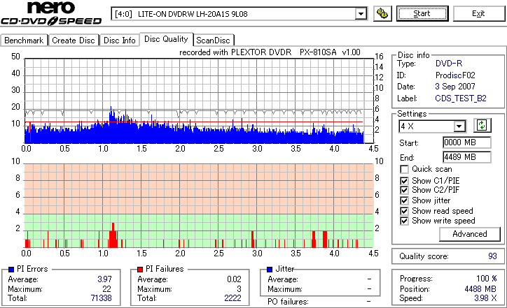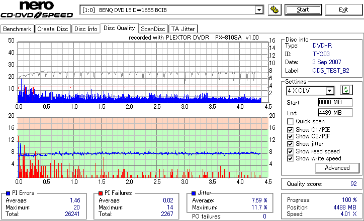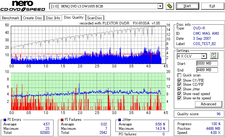Prodisc16倍も特に問題ない結果です。若干PIFが多めに出ていますが、記録速度も6倍〜16倍どれでも問題は出ていません。
