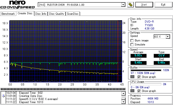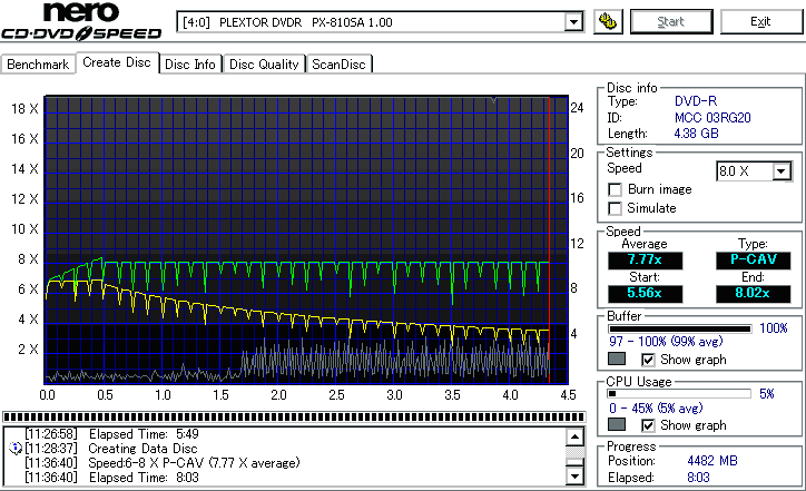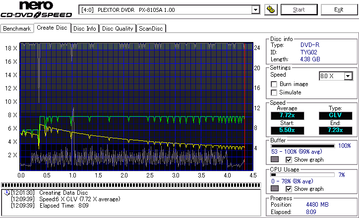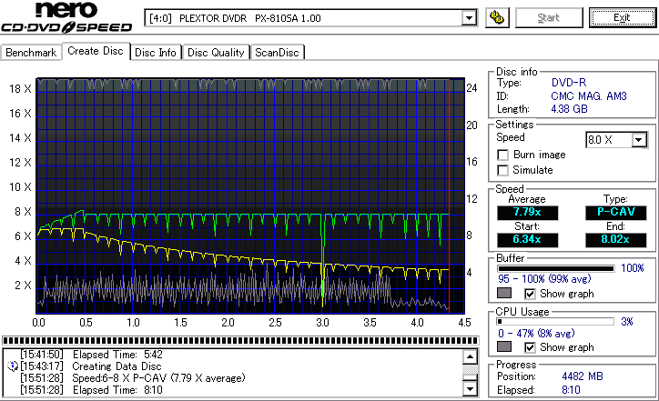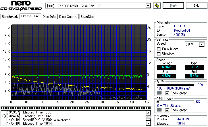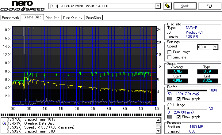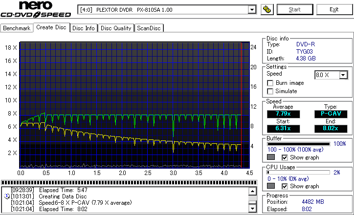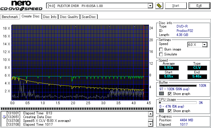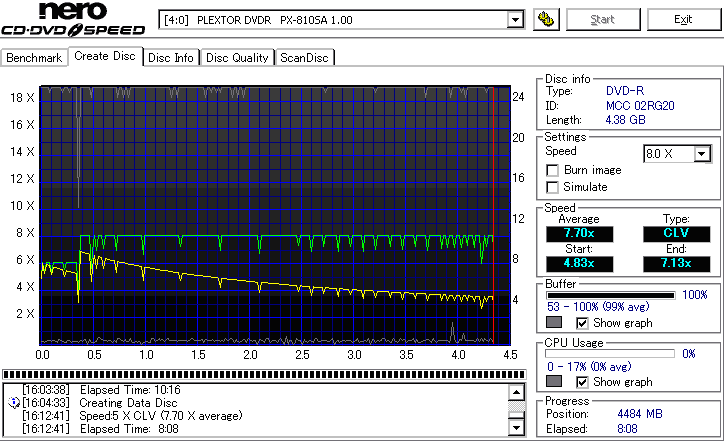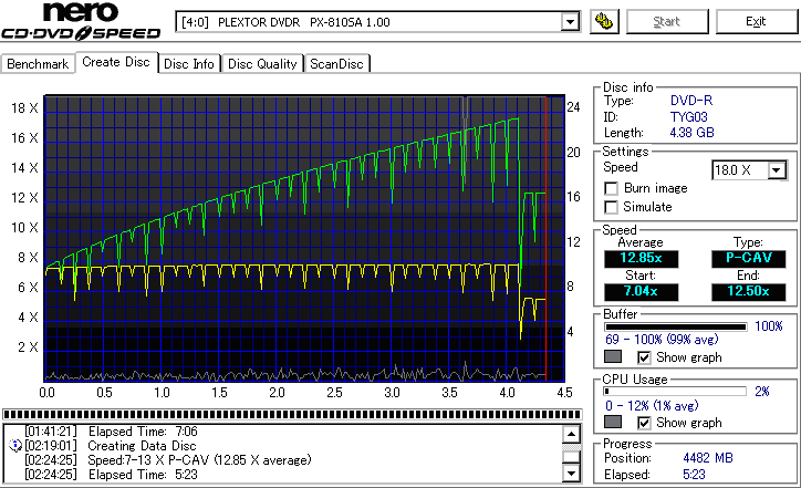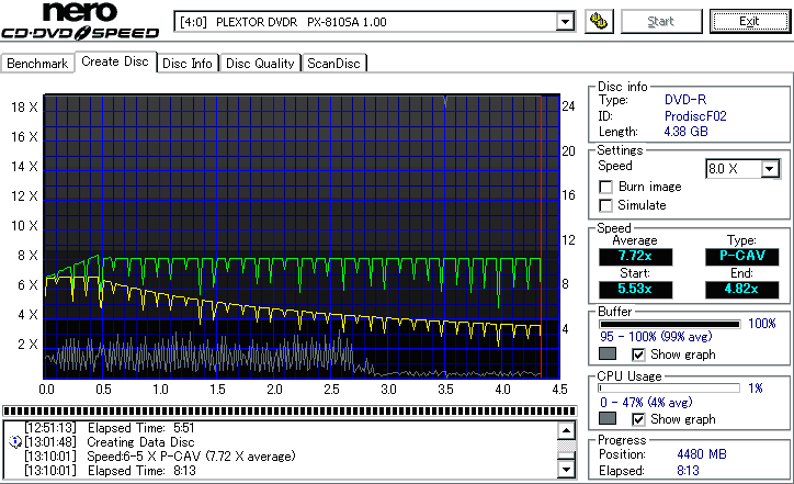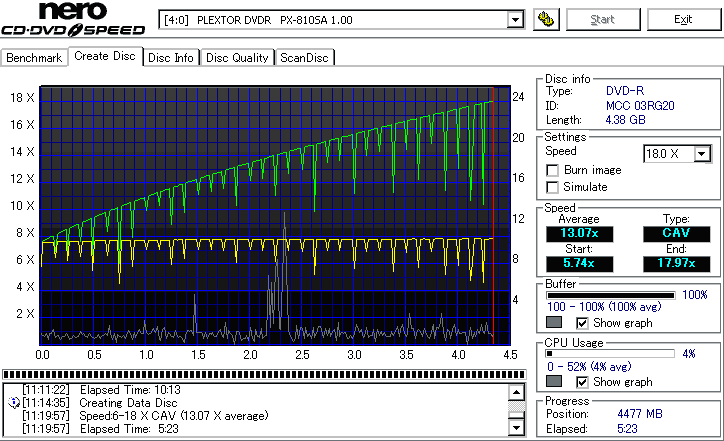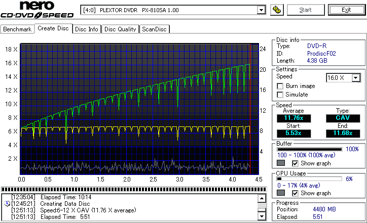 16倍速メディアは低速でも内周にCAV領域ができるためPIFが多めに出るのが欠点ですが、基本的にどの速度で焼いても問題なさそうです。 18倍速はさすがにエラーが増え始めてるような印象があるので、16倍速くらいが丁度良いでしょう。