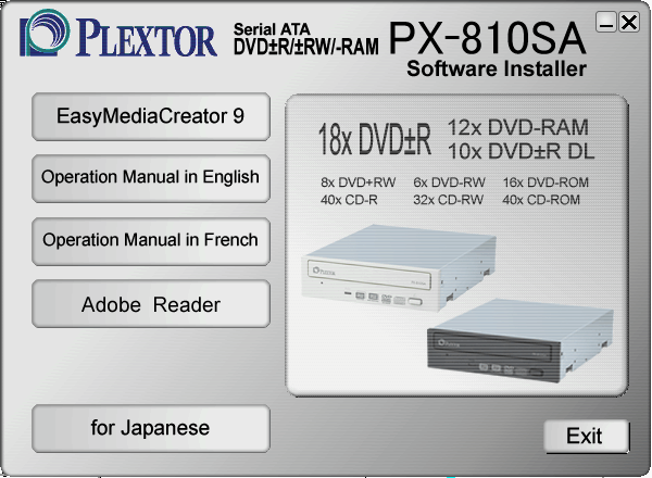 ![]() ・PlexTools Professionalでは動作どころかデバイスウィンドウで個体名称すら認識しません。 ![]() ・当然ながら、Q-Check機能は一切利用できません。 ![]() ・PlexTools Professional LEでも全く同じ挙動を取り、全く動作しません。 ![]() ・レジストリのベンダ名制限にひっかかりますが、それを外してやれば普通にCDSpeedで計測が可能になります。 (但し計測機能についてはまんまPioneerクオリティなので信頼性は高くないです) ![]() CSS付DVD-VIDEOの読み速度も制限なし。 ![]() ソフトウェアCD……と見せかけて。実はこいつDVD-ROMでした。 ![]() 付属ソフトはEasyMediaCreator9のみですが、これがCreator ClassicやCinePlayer、MyDVDなどの各種ソフトを統合しており、 データライティング、コピー、オーサリング、DVD再生はもとよりビデオ編集やwavファイル編集、mp3、システムのバックアップ等Nero以上に何でもこなします。 正直バルク版のDVR-212はバルクにしては値段が高めな上に添付ソフトがものすごく微妙なので、(こちら参考) 豊富な添付ソフトとプレクスターのサポートに期待するならば意外と購入する価値はあるかもしれません。 |
