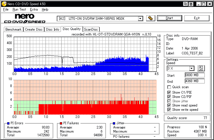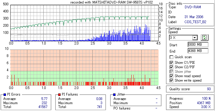 DVD-RAM 12x Burn Quality/Read Speed Test