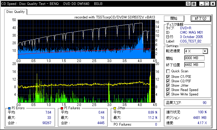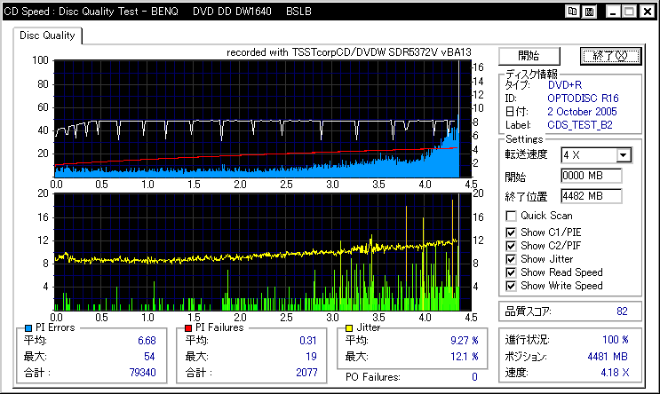 16x Brand-B群総評 海外ブランドはやはりかなりメディアを選びます。 まともに16倍に近い速度で使えるのはMR.DATAの+Rくらいでしょうか。 他はできるだけ8〜12倍程度に速度を落とした方が良さそうです。 |