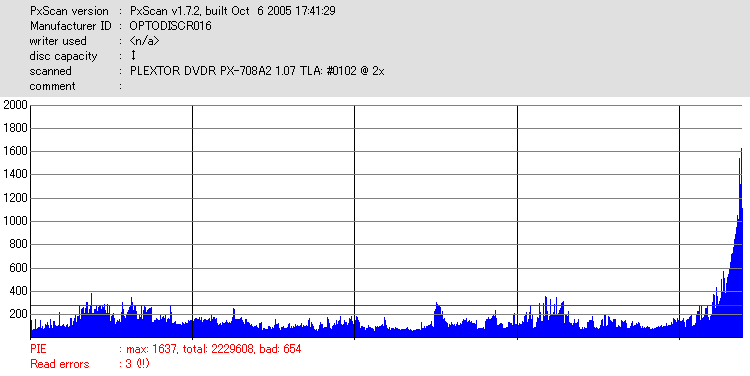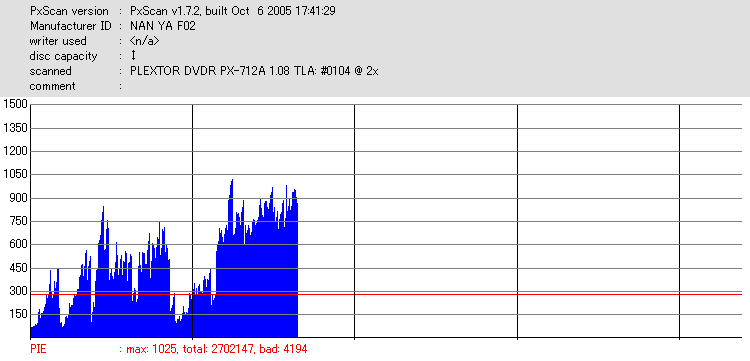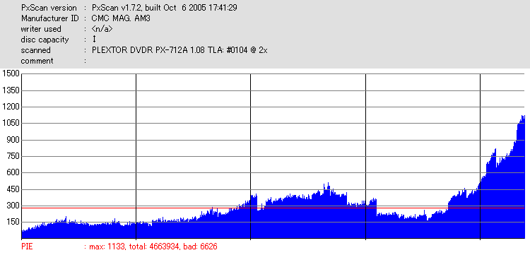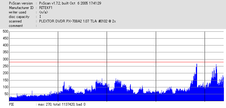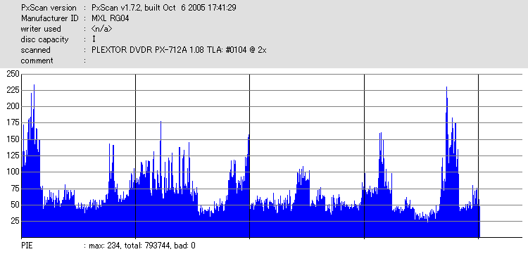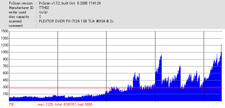 PxScan PISum8 with PLEXTOR PX-712SA - PX-712SAでのPxScan PI 8ECC Sumテストのグラフ - | |||||||||||||