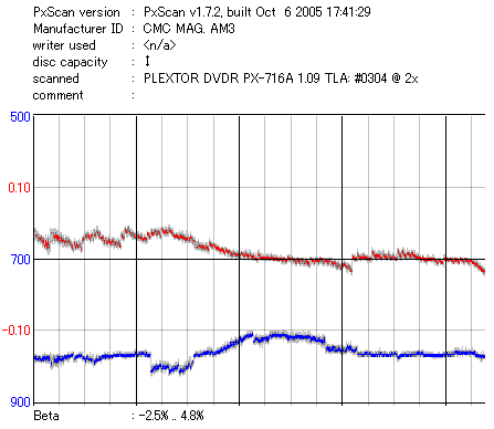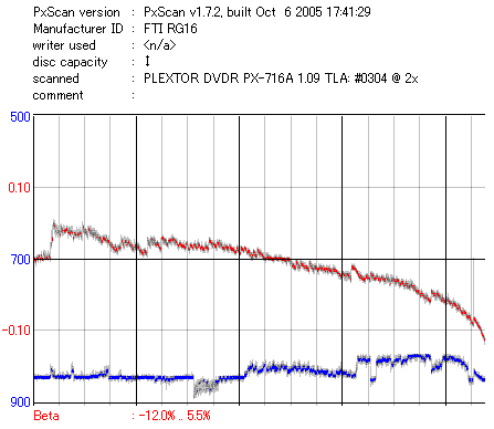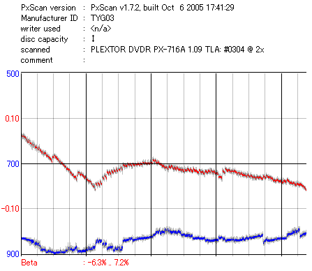 PxScan JitterBeta/TA Test with PLEXTOR PX-716A - PX-716AでのPxScan Jitter/Beta/TAテストグラフ - | |||||||||||||
