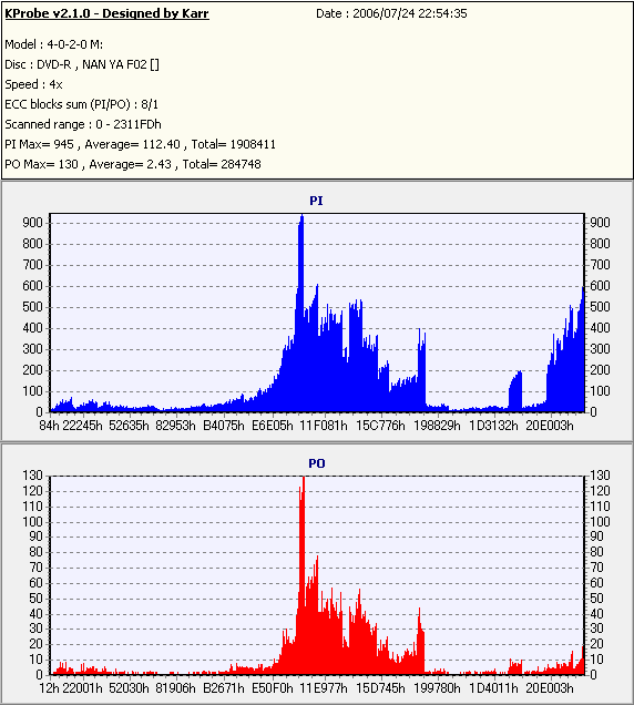 DVDInfoPro PI/PO Test with Pioneer DVR-111 - DVR-111でのDVDInfoのPI/POグラフ - | |||||||||||||