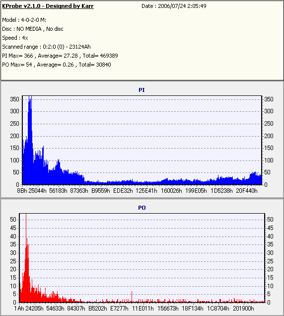 PlexTools Professional Q-Check PI/PO with PLEXTOR PX-760A - PX-760AでのPlexTools Q-check PI/POのグラフ - | |||||||||||||