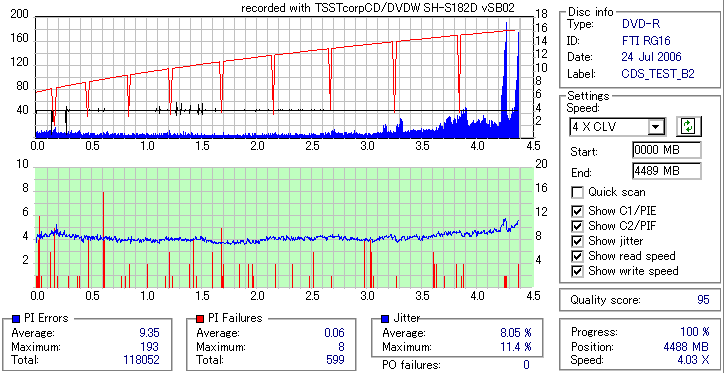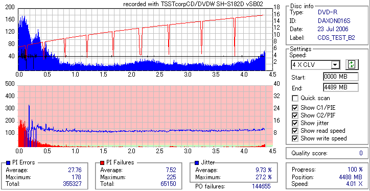CDSpeed Quality Scan with BenQ DW1655 - DW1655でのCDSpeed 品質テストグラフ - | |||||||||||||