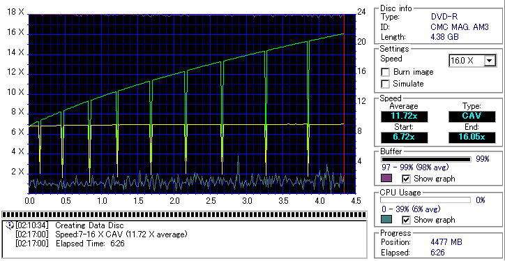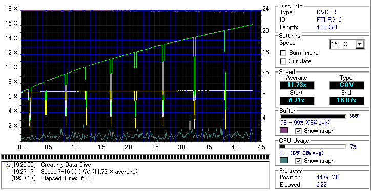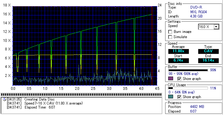 CDSpeed "Create DataDisc" - CDSpeedでのデータディスク作成時の速度グラフ - | |||||||||||||