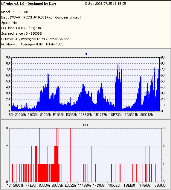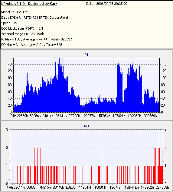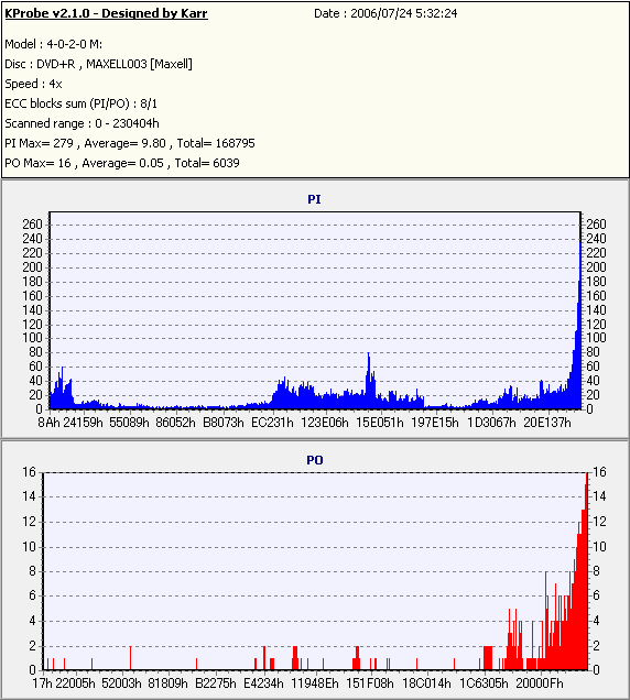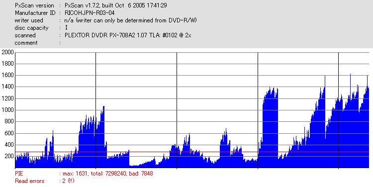 DVDInfoPro PI/PO Test with Pioneer DVR-111 - DVR-111でのDVDInfoのPI/POグラフ - | |||||||||||||