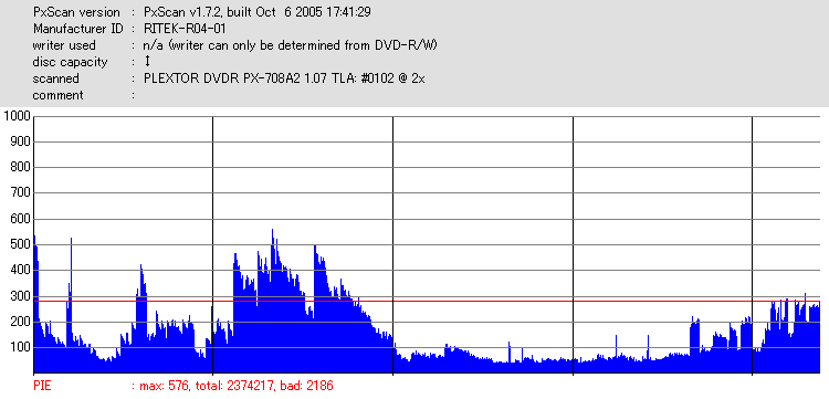 PxScan PISum8 with PLEXTOR PX-712SA - PX-712SAでのPxScan PI 8ECC Sumテストのグラフ - | |||||||||||||