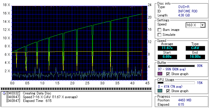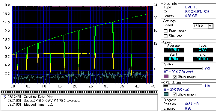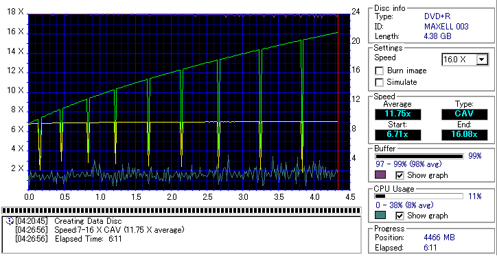 CDSpeed "Create DataDisc" - CDSpeedでのデータディスク作成時の速度グラフ - | |||||||||||||