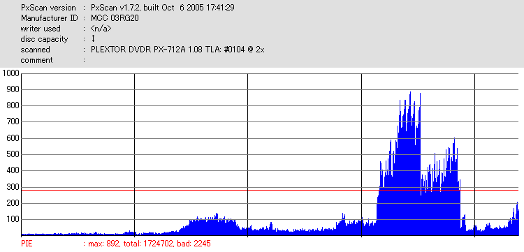 PxScan PISum8 with PLEXTOR PX-712SA - PX-712SAでのPxScan PI 8ECC Sumテストのグラフ - | |||||||||||||