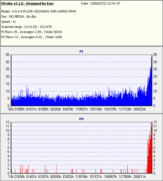 PlexTools Professional Q-Check PI/PO with PLEXTOR PX-760A - PX-760AでのPlexTools Q-check PI/POのグラフ - | |||||||||||||
