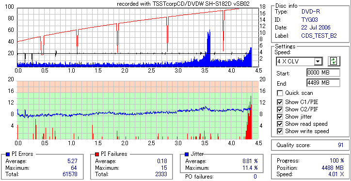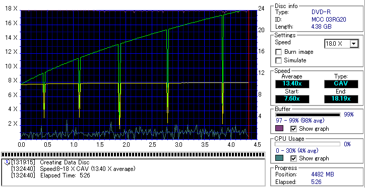 5分25秒という驚異的なスピードを記録する18倍焼きは速度的には非常に魅力的なんですが、如何として記録品位が微妙に安定しない感じです。