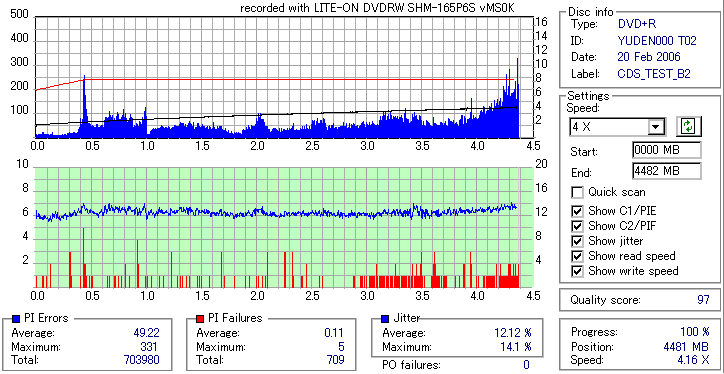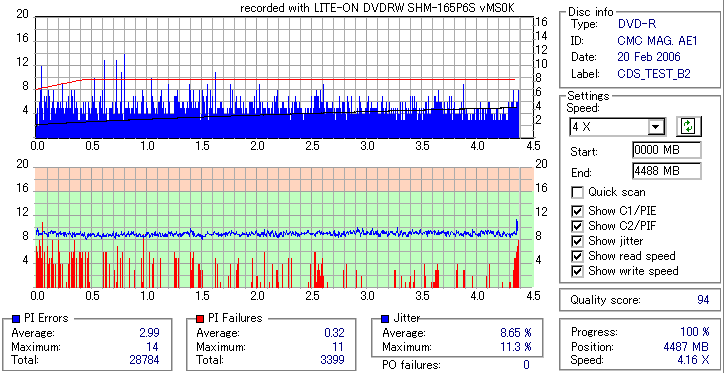 LITEON DVD-RW/+RW/RAM 16x/5x SuperAllWrite SHM-165P6S -Firm.MS0K Burn Quality Test- |