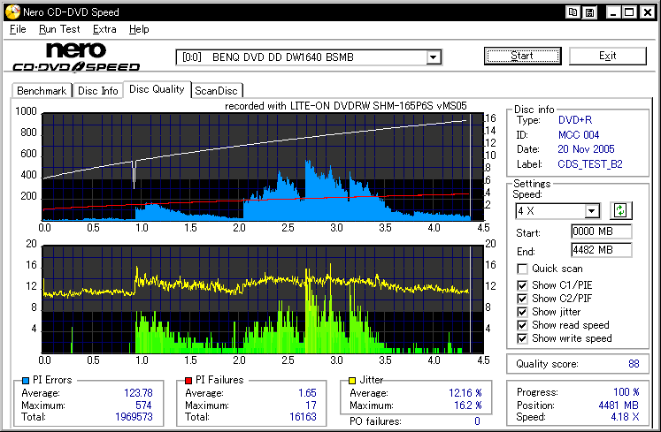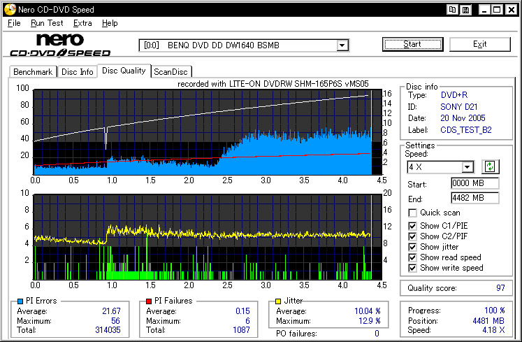 LITEON DVDRW/RAM 16x/5x SuperAllWrite SHM-165P6S -DVD+R Burn Quality Test- |