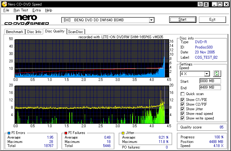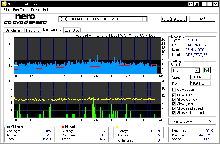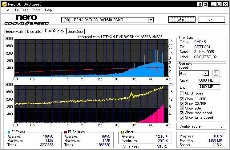 LITEON DVDRW/RAM 16x/5x SuperAllWrite SHM-165P6S -DVD-R Burn Quality Test- |