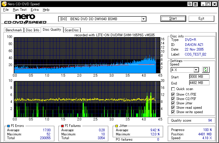 LITEON DVDRW/RAM 16x/5x SuperAllWrite SHM-165P6S -DVD+R Burn Quality Test- |