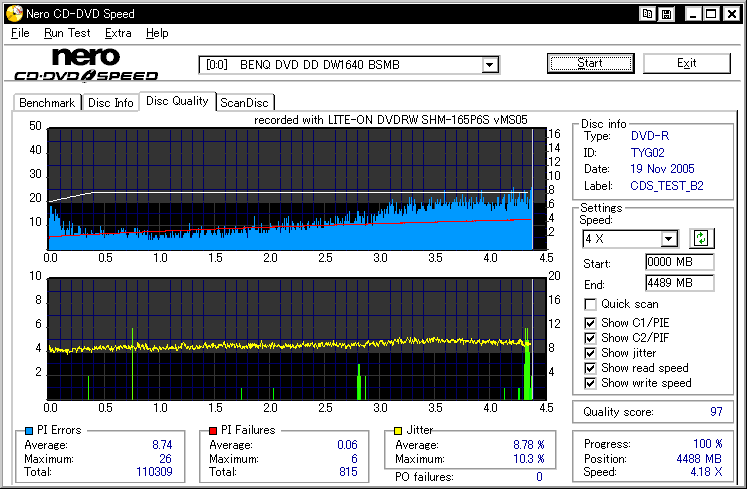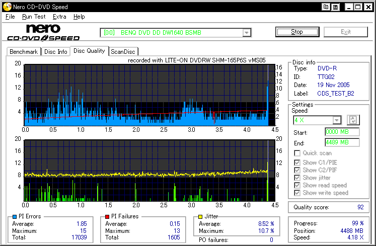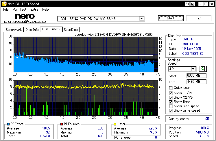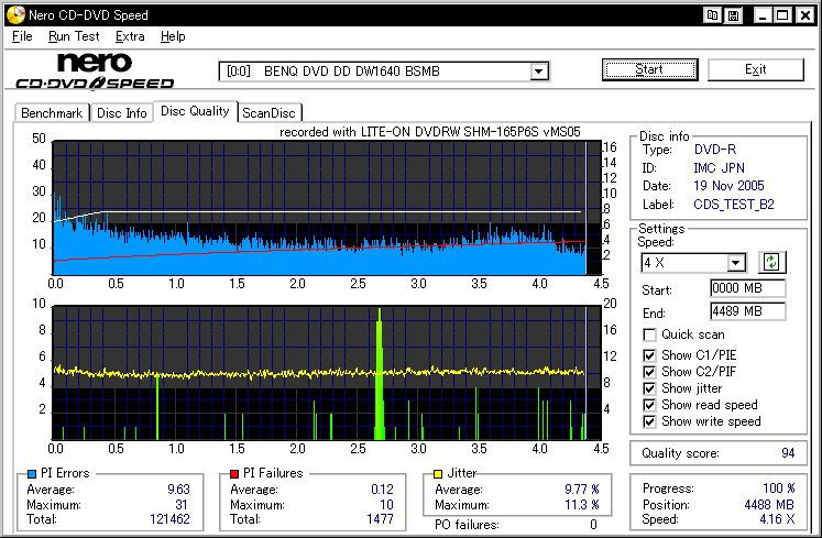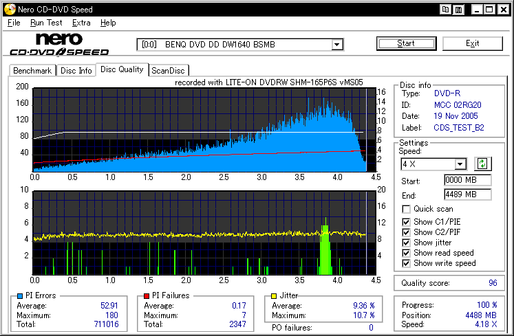LITEON DVDRW/RAM 16x/5x SuperAllWrite SHM-165P6S -DVD-R Burn Quality Test- |
