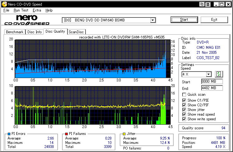 LITEON DVDRW/RAM 16x/5x SuperAllWrite SHM-165P6S -DVD+R Burn Quality Test- |