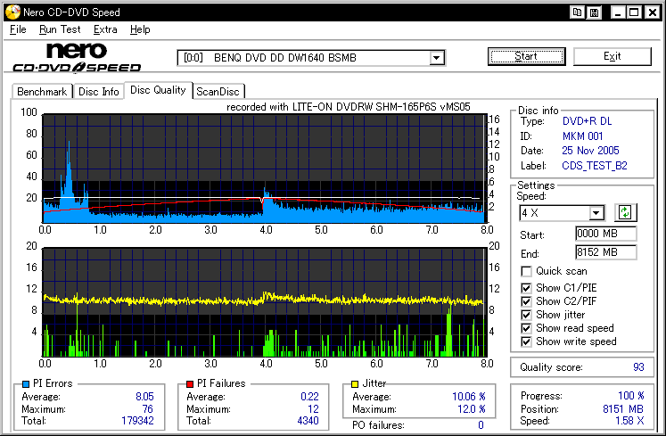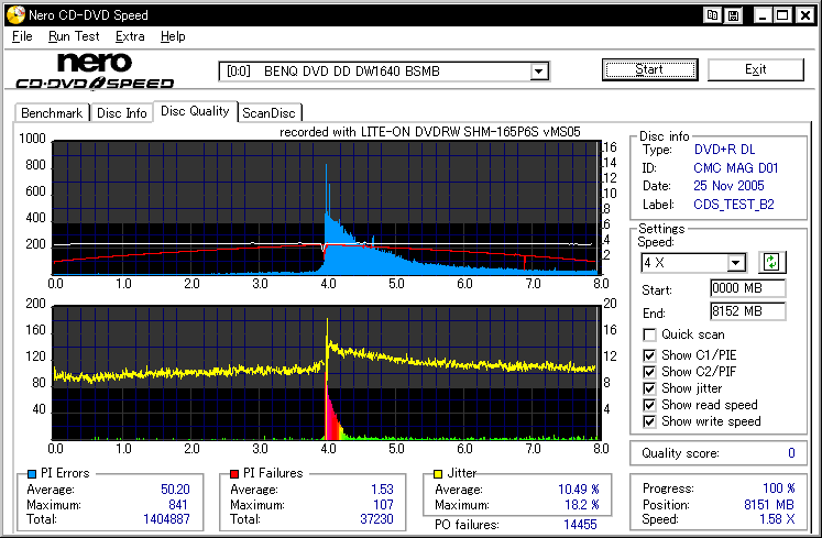 LITEON DVDRW/RAM 16x/5x SuperAllWrite SHM-165P6S -DVD+R DL Burn Quality Test- |