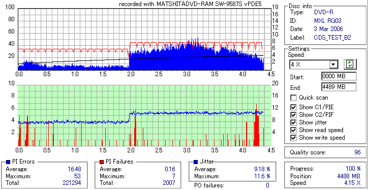Panasonic DVDR 16x/RAM 12x SuperMulti SW-9587 -Burn Quality Test- |