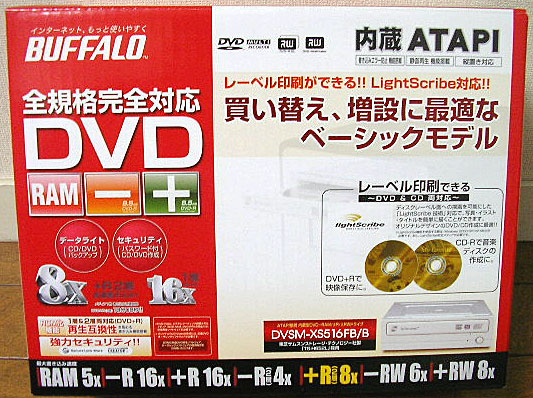 ![]() 東芝サムスンテクノロジ・ストレージ TS-H652L(Buffalo DVSM-XS516FB/B) (JPY) \6980 別にわざわざこんないかにも売れなさそうなマイナードライブ買わんでも…とは自分でも思ったんですが、 DVD-RAM計測に惹かれてついつい購入してきてしまったTSSTのドライブです。 しかし、これでやっと5372Vとオサラバできる…… ドライブ性能