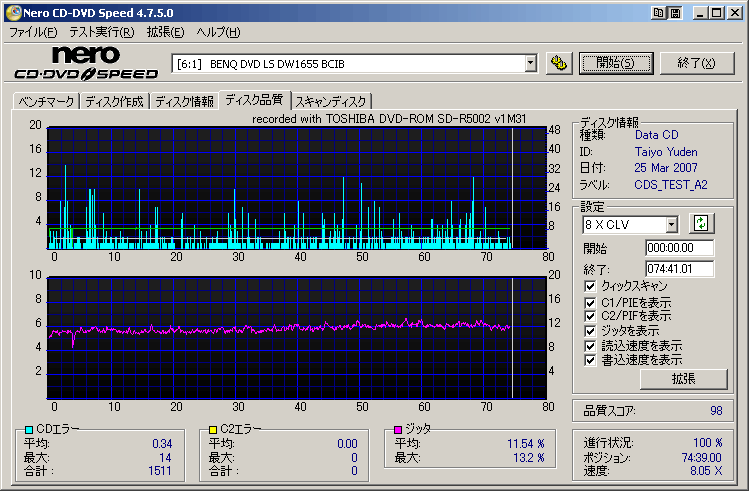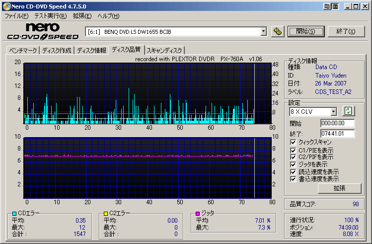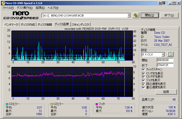 DVDの焼き品質には満足しているのですが、CDは、そんなに悪いんですね・・・