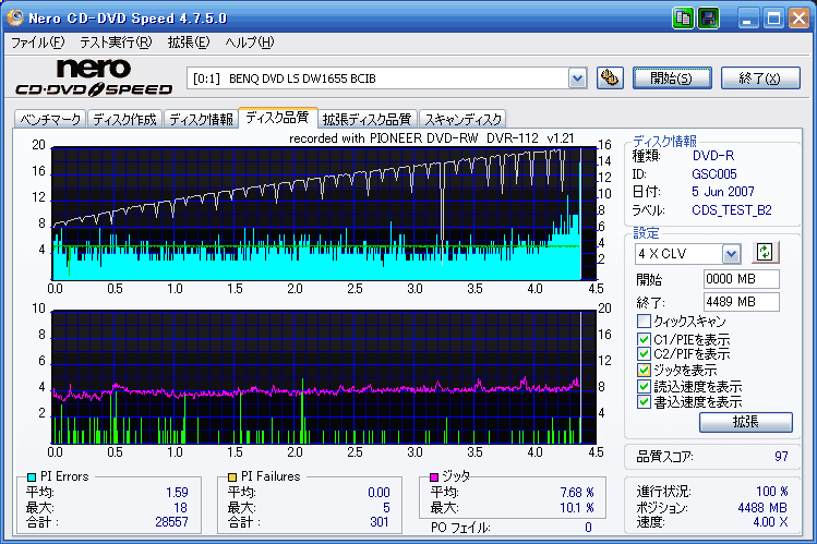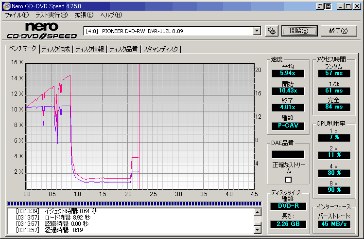 「GIGASTORAGEの16X」16倍速での結果です。言うほど悪くないかも・・・