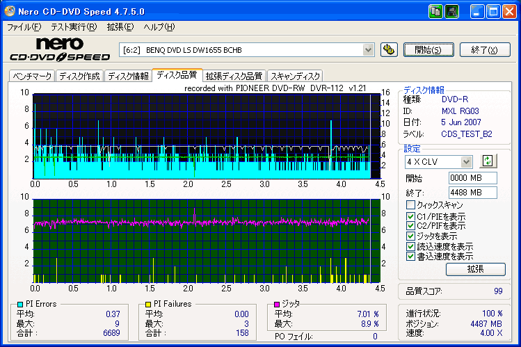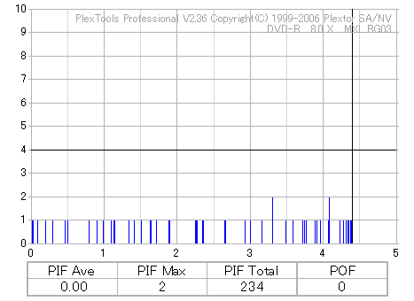 CPRMハードコートよりPIFは落ち着いています。 やはりメディアを大量生産すると品質は下がってしまうみたいですね。 その分値段も下がっているのですが・・・・。(黙) 全く問題等は無いんですけどね。森メディアとしてこの結果はちょっと残念な気もします。