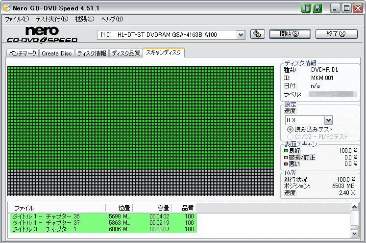 先程、DVDプレイヤーで再生してみたのですが、 最初から最後まで、何の問題もなく再生されました。